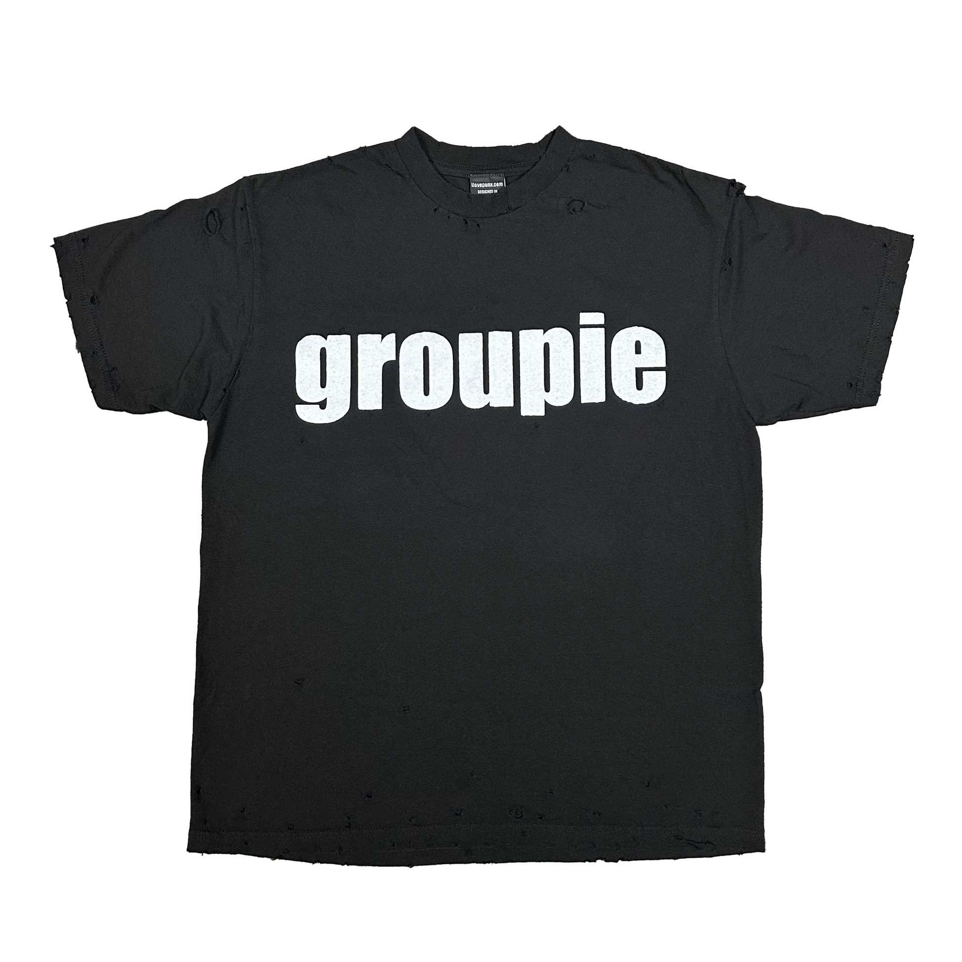 .OUR GROUPIE TEE THAT HAS BEEN HAND DISTRESSED BY PUNX TO PERFECTION, SHIT WOULD LOOK SO FIRE WITH A THERMAL UNDER.