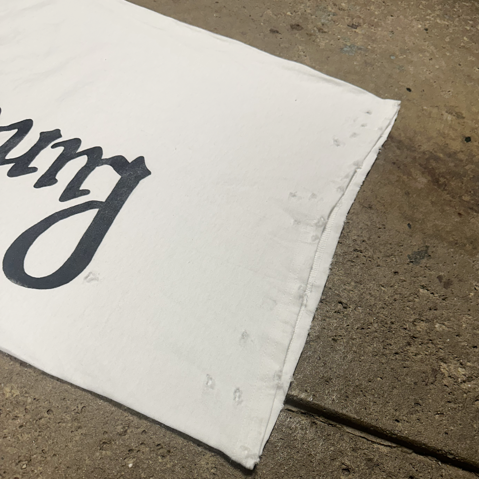 ONE OF ONE WHITE PUNXLOVER TEE WITH THE WEBSITE ON THE BACK. HAND DISTRESSED BY PUNX. PERFECT, NOT QUITE RIPPED TO SHREDS.