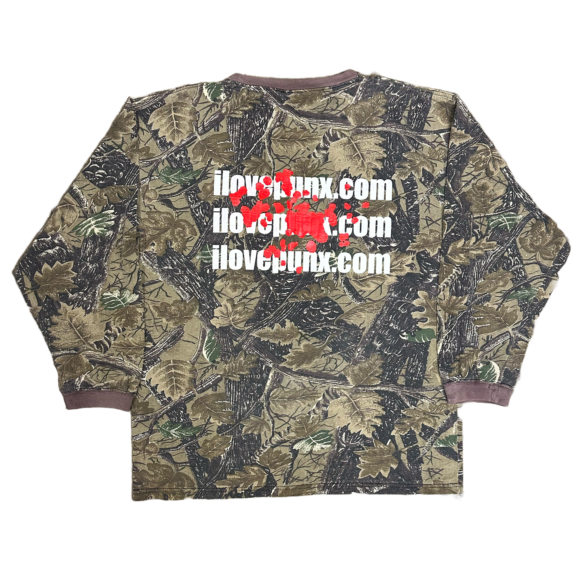 VINTAGE CAMO LONG SLEEVE, TAGGED XL FITS LIKE 2X, WORKS GREAT AS AN OVERSHIRT OR JUST TO ROCK ON IT OWN. SHIT HAS BEEN WORN SO ITS GONA SOME DISTRESSING SPOTS IN IT. FIRE AS FUXK.